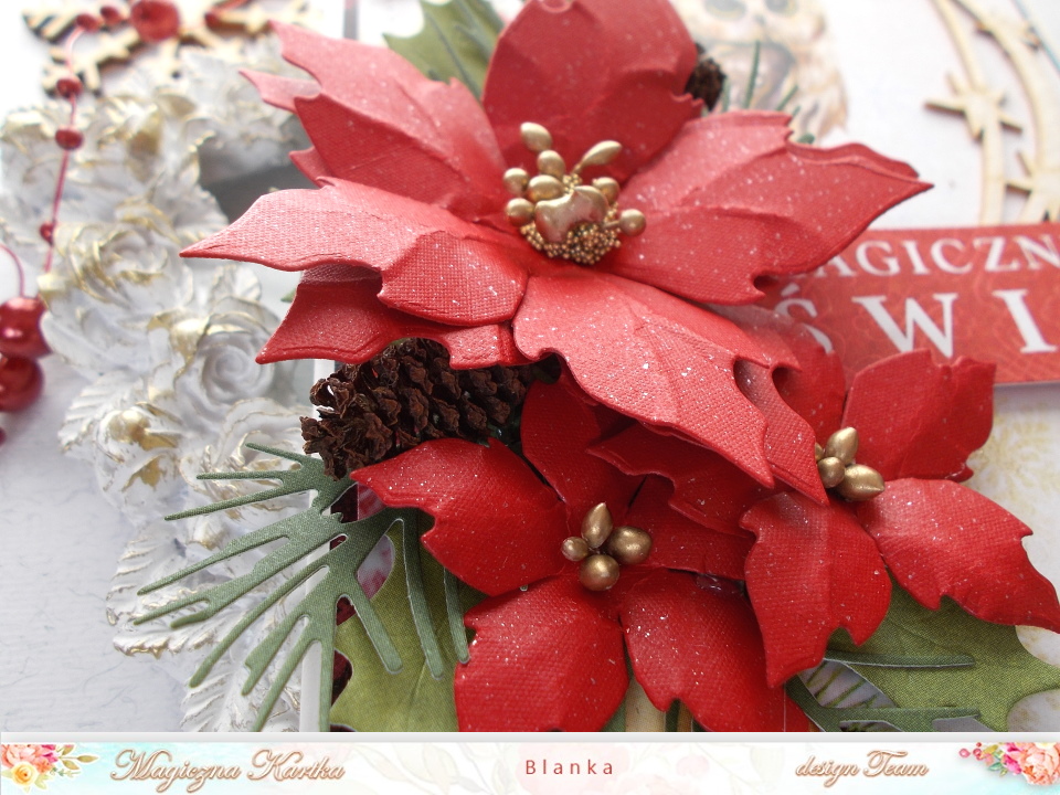 Scraperki z wyprzedzeniem zaczynają przygotowania do Świąt, często już latem powstają Bożonarodzeniowe kartki. A jak wam idzie tegoroczne świąteczne kartkowanie? Ja zaczęłam dopiero niedawno. Dziś jedna z pierwszych tegorocznych moich zimowych kartek z sympatyczną sową z arkusza 03 z kolekcji Coś śnieżnego. Kwiaty wycięłam z czerwonego kartonu wizytówkowego metalic.